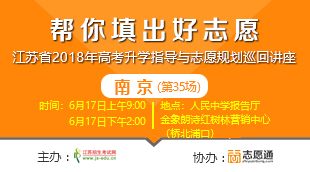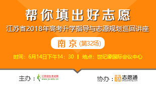 江蘇省2018年高考升學(xué)指導(dǎo)與志愿規(guī)劃巡回講座(南京) [線下] 活動時(shí)間:2018-06-14 14:30 - 15:30 活動地點(diǎn):南京世紀(jì)緣國際會議中心 活動人數(shù):500 -