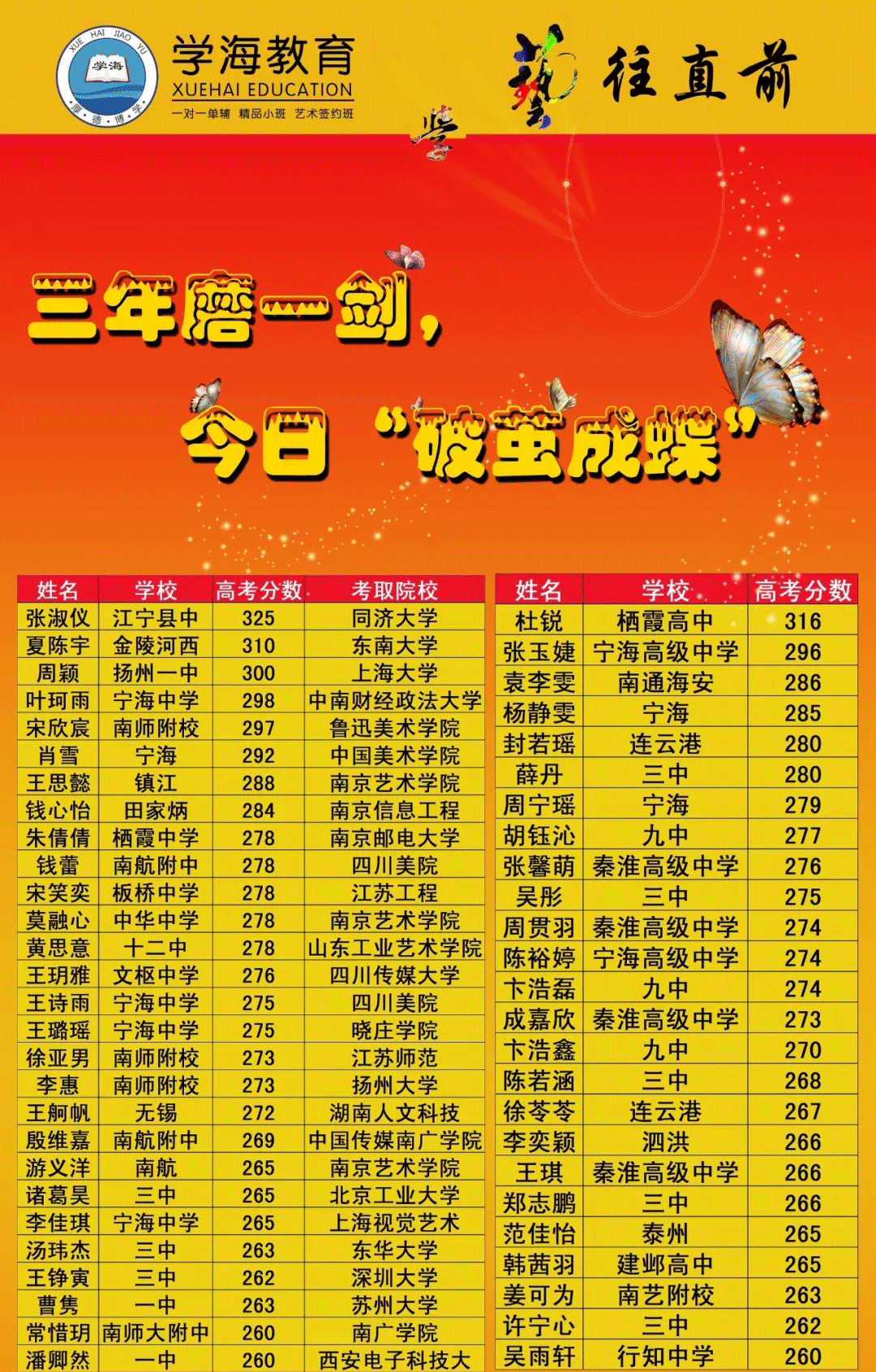 作為藝術(shù)生的家長(zhǎng)除了要做好學(xué)生的后勤保障之外,還可以幫孩子挑選一個(gè)合適的文化課培訓(xùn)班。但是文化培訓(xùn)班不是隨便選的,教學(xué)經(jīng)驗(yàn)、輔導(dǎo)老師、管理方法、教學(xué)成果等都是考量的標(biāo)準(zhǔn),這里江蘇招生考試網(wǎng)小編推薦大家“學(xué)海藝考文化封閉班”!