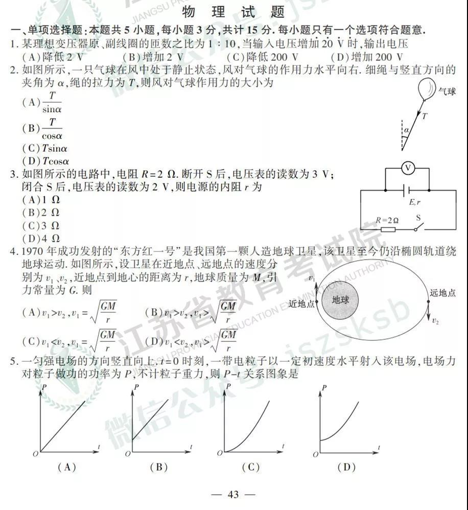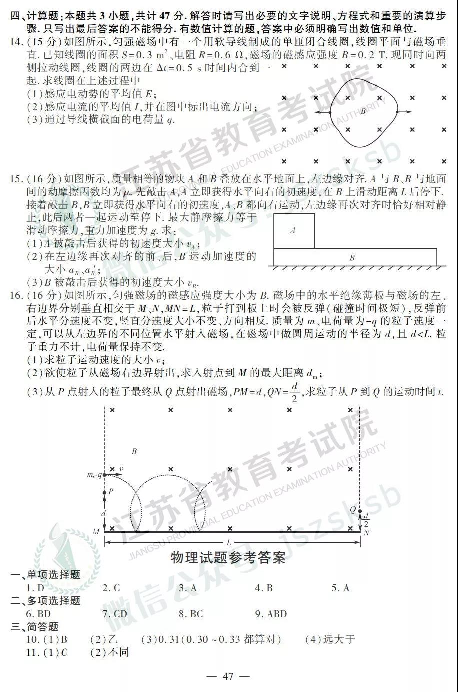 2019年江蘇高考試卷的語(yǔ)文、數(shù)學(xué)、英語(yǔ)、 物理、化學(xué)、生物、歷史、地理、政治9門(mén)科目的試題及參考答案全部出爐啦!在此,江蘇招生考試網(wǎng)小編第一時(shí)間整理了2019年江蘇高考物理試題及參考答案,考生家長(zhǎng)趕緊來(lái)看看吧。