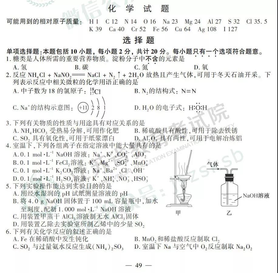 2019年江蘇高考試卷的語(yǔ)文、數(shù)學(xué)、英語(yǔ)、 物理、化學(xué)、生物、歷史、地理、政治9門科目的試題及參考答案全部出爐啦!在此,江蘇招生考試網(wǎng)小編第一時(shí)間整理了2019年江蘇高考化學(xué)試題及參考答案,考生家長(zhǎng)趕緊來(lái)看看吧。