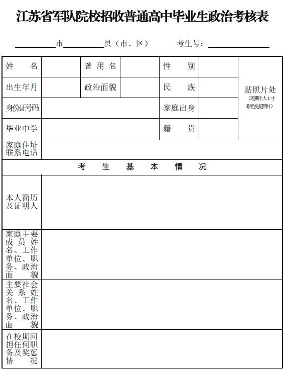 江蘇省軍隊(duì)院校招收普通高中畢業(yè)生政治考核表.pdf