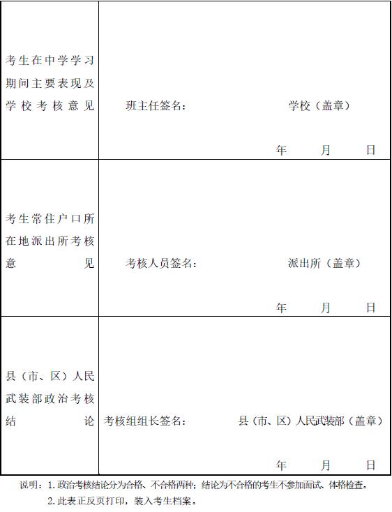 12.“考生常住戶口考核意見”由戶籍所在地派出所填寫。