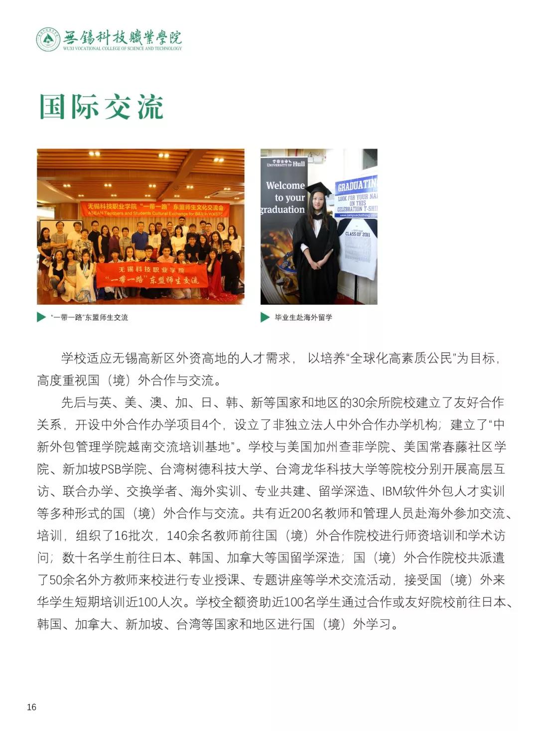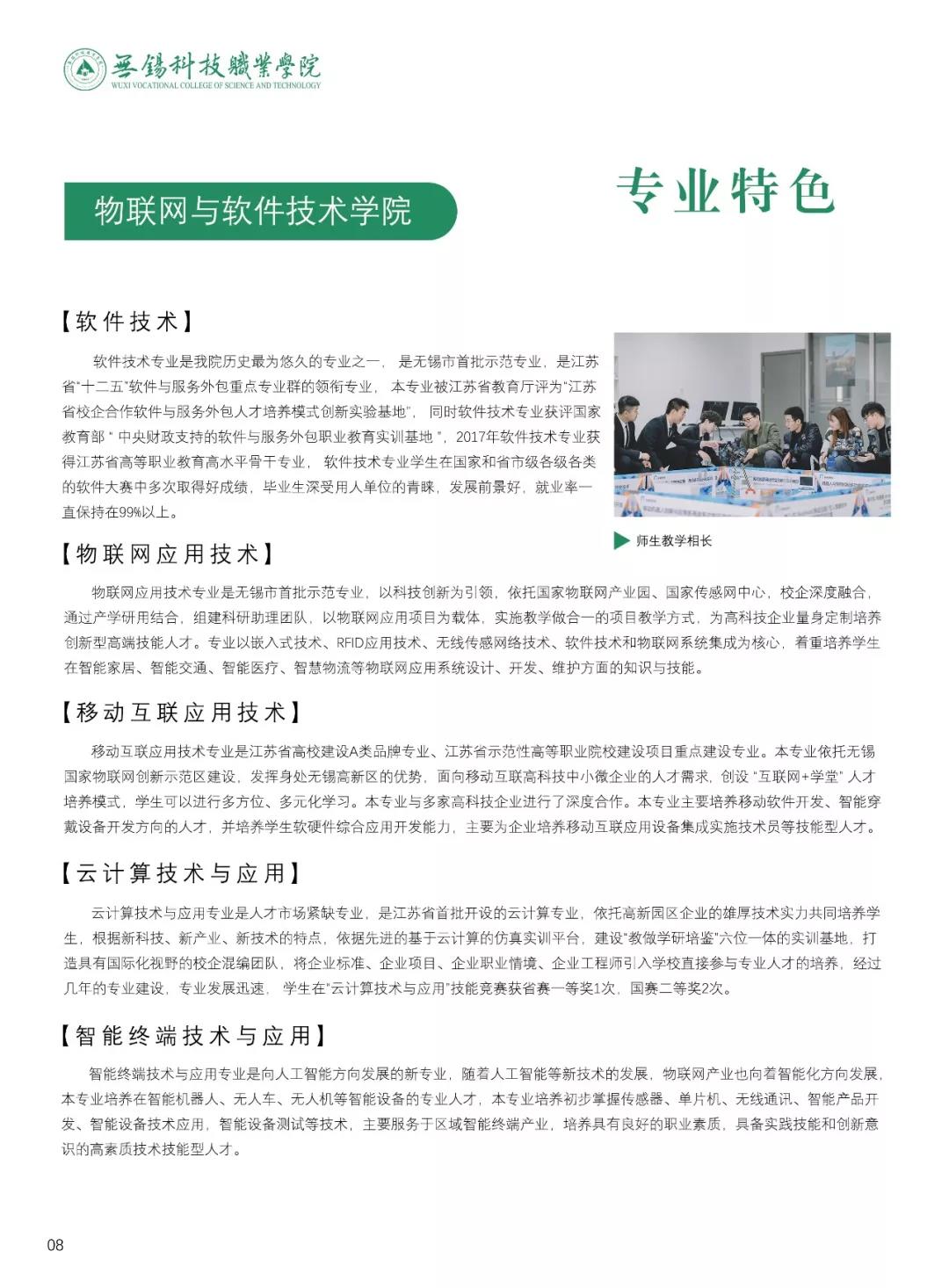 無錫科技職業(yè)學(xué)院坐落于江蘇省無錫市,是全省首家國家級高新技術(shù)開發(fā)區(qū)舉辦的公辦高職院校, 是江蘇省示范性高職院校,設(shè)有物聯(lián)網(wǎng)與軟件技術(shù)學(xué)院、電子技術(shù)學(xué)院、國際商學(xué)院、中德機(jī)電學(xué)院、文化創(chuàng)意學(xué)院、外語與基礎(chǔ)教育學(xué)院、繼續(xù)教育學(xué)院7個二級學(xué)院,擁有智能互聯(lián)、光伏工程技術(shù)、智能制造應(yīng)用技術(shù)、商務(wù)流程服務(wù)外包、數(shù)字文化與創(chuàng)意設(shè)計、涉外事務(wù)管理等六個特色專業(yè)群。