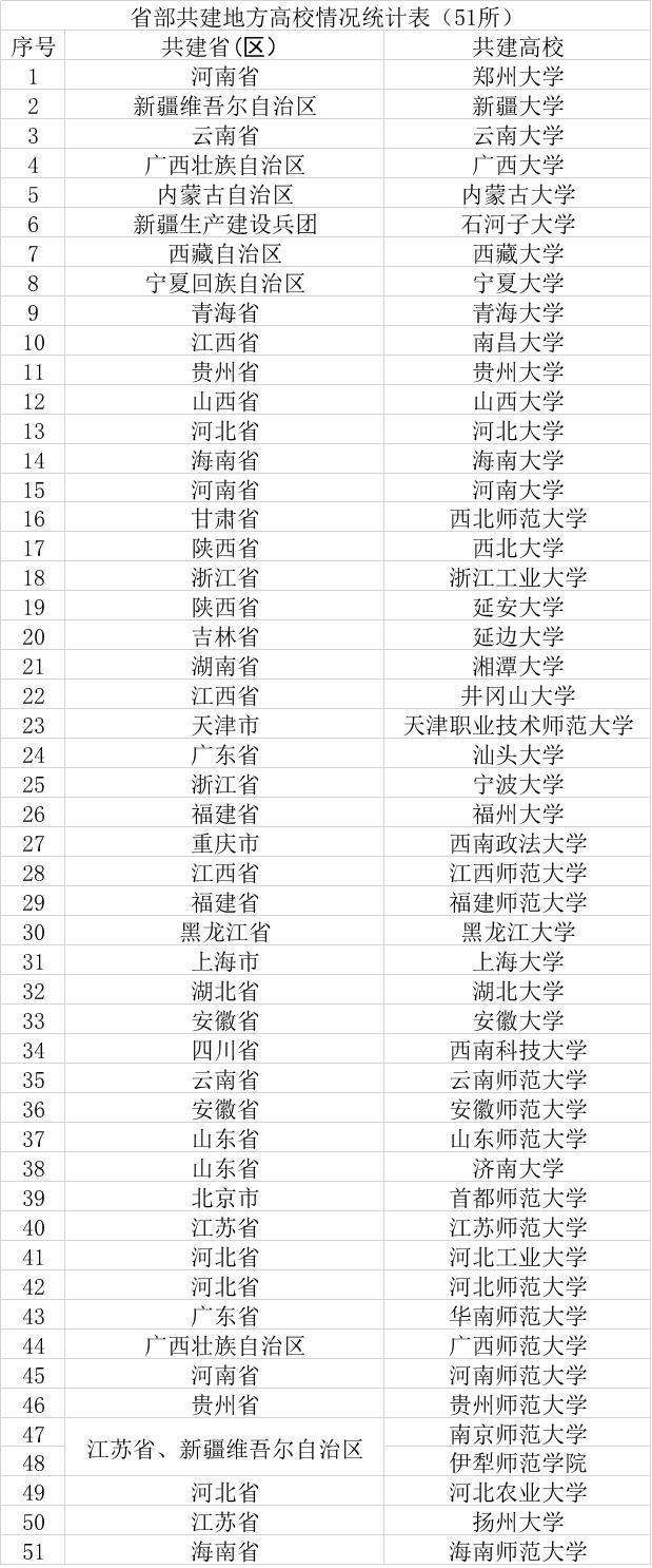 根據(jù)教育部網(wǎng)站發(fā)布的名單,目前省部共建高校共51所,其中包括4所“省部重點支持”高校;省部部共建高校共30所。