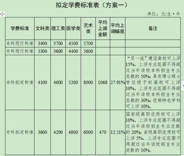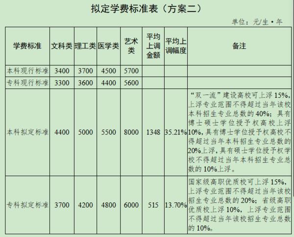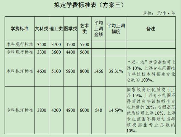 綜合考慮全省經(jīng)濟(jì)發(fā)展水平、居民承受能力、高等教育發(fā)展水平及周邊省份學(xué)費(fèi)標(biāo)準(zhǔn)等因素,河南省擬定了三個(gè)調(diào)整方案。