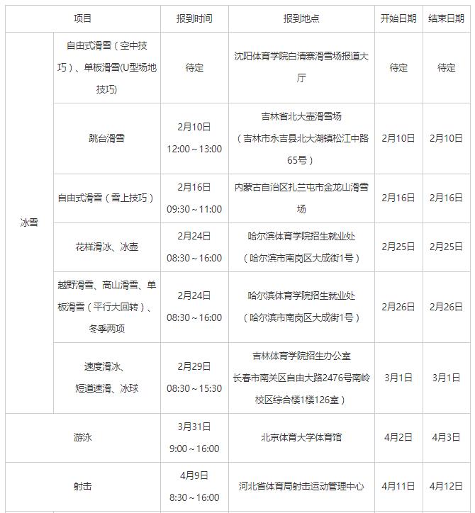 2020年高水平運(yùn)動隊招生部分項目統(tǒng)測和文化課考試安排出爐,具體如下: