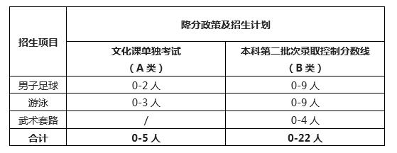 學(xué)校根據(jù)高水平運動隊建設(shè)需要、生源情況和測試結(jié)果等,擇優(yōu)確定入選資格考生,寧缺毋濫,經(jīng)公示、審核通過后分別享受以下錄取政策:
