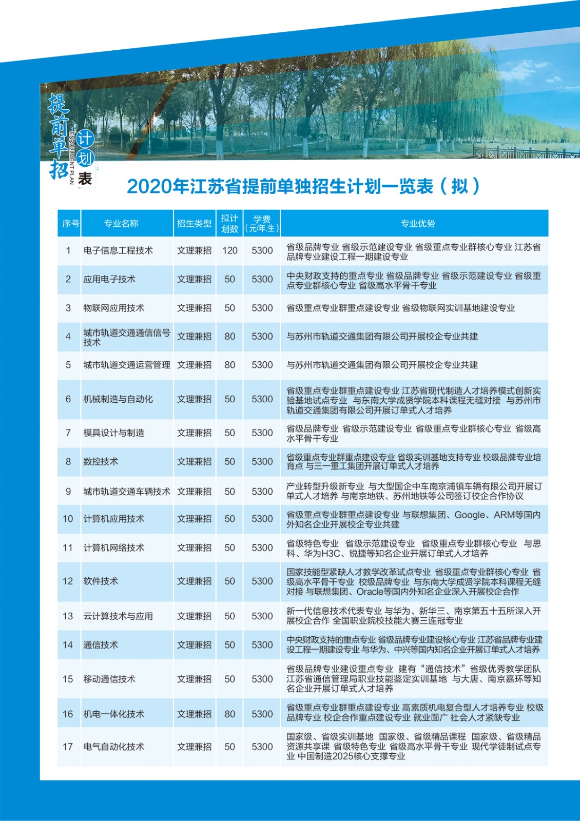 淮安信息職業(yè)技術(shù)學(xué)院2020年提前招生計(jì)劃一覽表(擬)