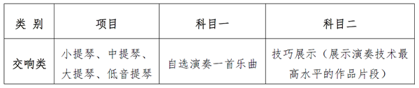 2. 科目一由主考評委決定演奏時間長短,考試時間不超過5分鐘;科目二考試時間最長不超過3分鐘。