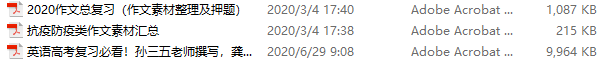 2020年作文總復習、2020年英語所有題型解題技巧匯總(來源于龔露、孫三五老師);南通4模、鎮(zhèn)江3模、揚州4模;金中、海安中學、南外、南師附校數學卷;徐州考前模擬卷等等。