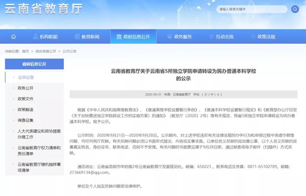 9月21日,云南省教育廳正式發(fā)布了《關(guān)于云南省5所獨(dú)立學(xué)院申請(qǐng)轉(zhuǎn)設(shè)為民辦普通本科學(xué)校的公示》。
