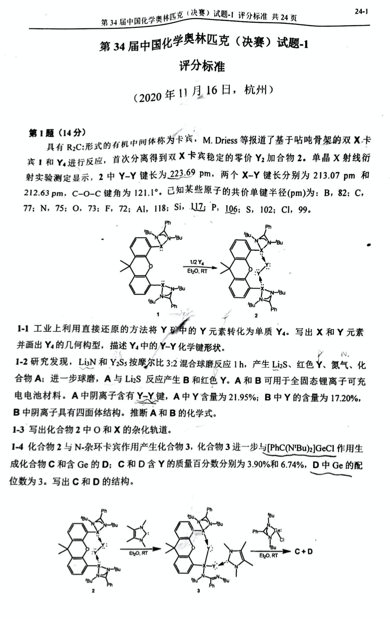 11月16日,2020年第34屆化學(xué)奧林匹克競賽決賽正在進(jìn)行中,2020年化學(xué)競賽決賽首次采用兩場理論的考試模式,江蘇招生考試網(wǎng)團(tuán)隊(duì)(微信公眾號:jszkwx)第一時(shí)間為大家整理決賽測試試題,供參考。