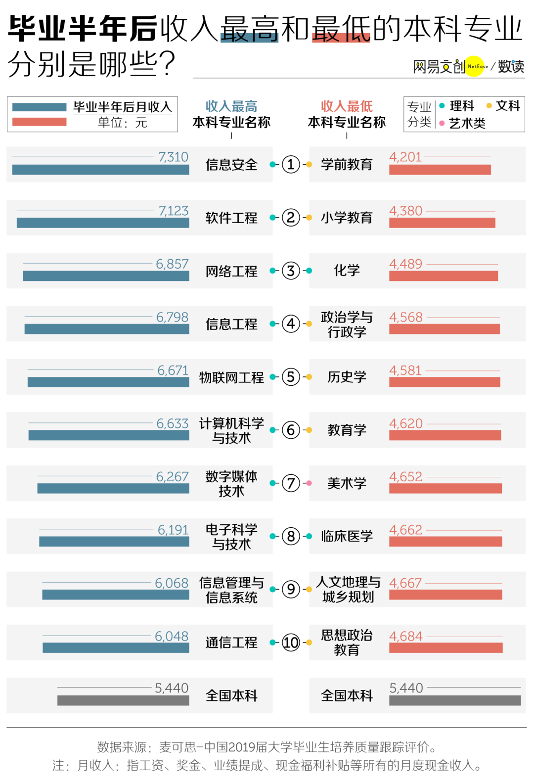 然而,畢業(yè)半年后收入較低的10個(gè)專業(yè)幾乎都是文科專業(yè)。