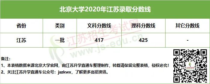 北京大學(xué):文科分?jǐn)?shù)線417分、理科分?jǐn)?shù)線425分。