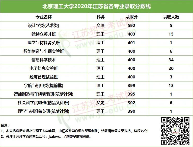 北京理工大學(xué):理工中徐特立英才班錄取分為403分、文史中社會(huì)科學(xué)試驗(yàn)班(精品文科班)錄取分392分。