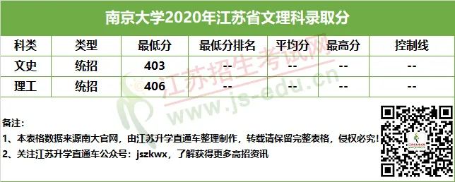 南京大學(xué):文史最低分為403分、理工最低分為406分。