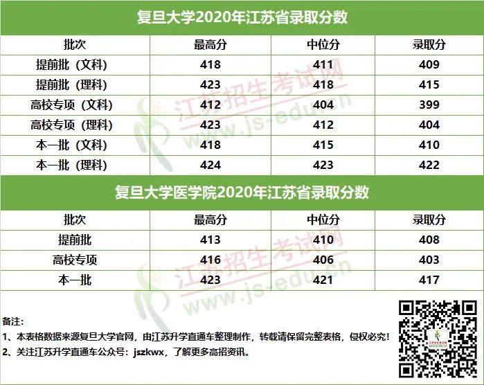復(fù)旦大學(xué):提前批文科的最高分是418分、理科最高分是423分;本一批文科最高分是418分、理科最高分是424分。