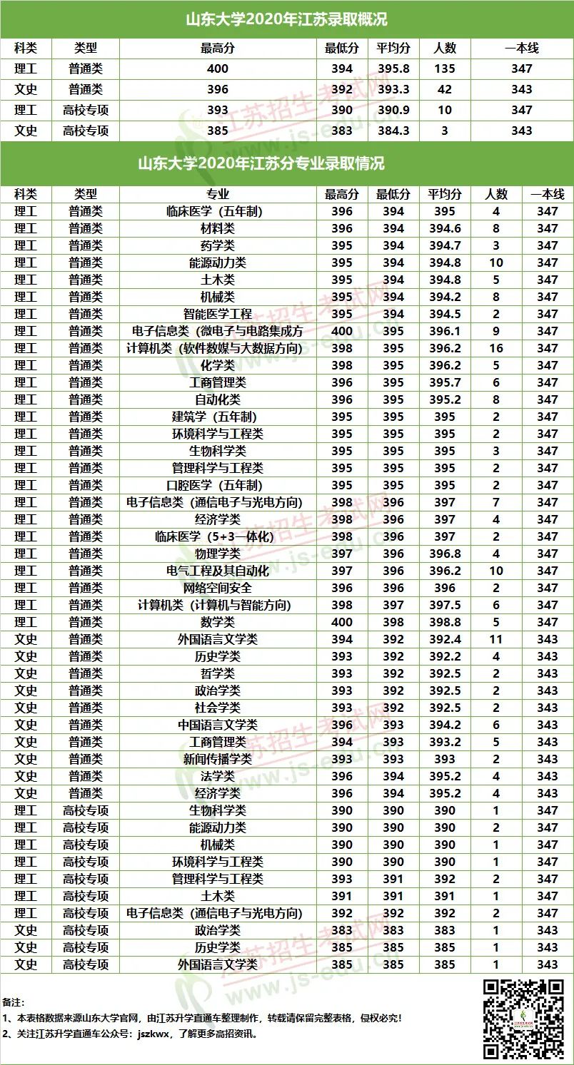 山東大學(xué):理科普通類招生中最高分是400分,最低分是394分;文科普通類招生中最高分是396分,最低分是392分。