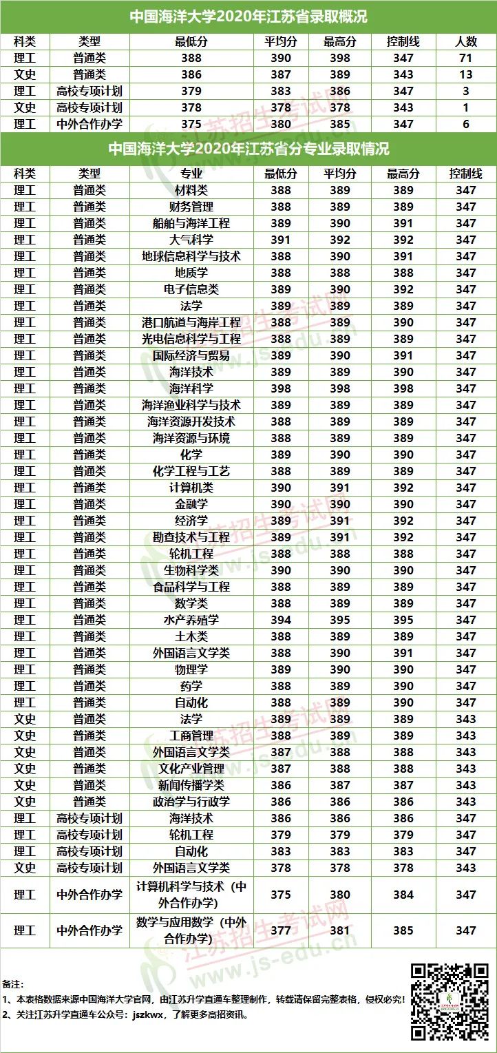 中國(guó)海洋大學(xué):理科普通類招生中最高分是398分,最低分是388分;理工類的中外合作辦學(xué)最高分是385分,最低分是375分;文科普通類招生中最高分是387分,最低分是386分。