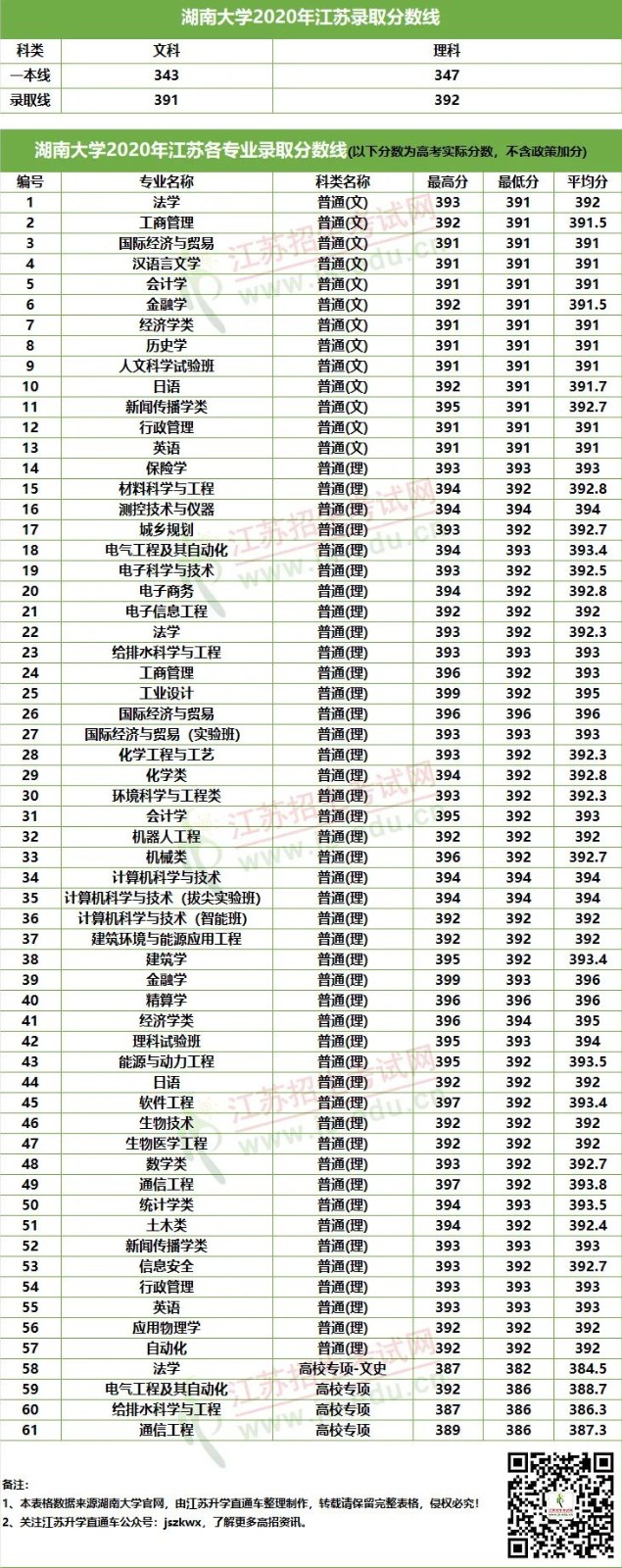 湖南大學(xué):普通類理科中最高分的有兩個(gè)專業(yè)分別是工業(yè)設(shè)計(jì)、金融學(xué),均是399分;最低分有材料科學(xué)與工程、城鄉(xiāng)規(guī)劃等28個(gè)專業(yè),均是392分。普通類文科中最高分的專業(yè)是新聞傳播學(xué)類,為395分;最低分為391分。