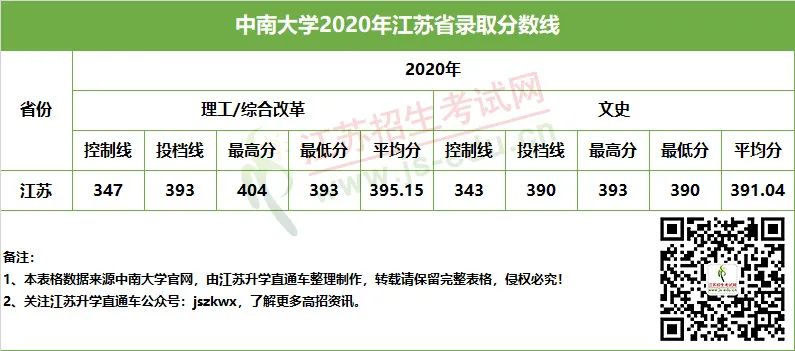 中南大學(xué):理工最高分404分,最低分393分;文史最高分393分,最低分390分。