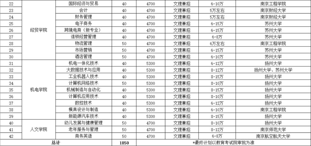 注:以上招生專業(yè)及計劃以江蘇省教育考試院公布為準。
