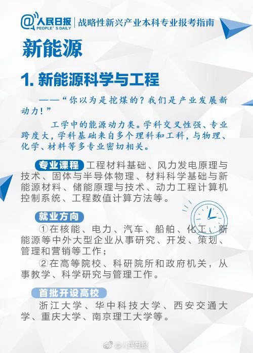今天,江蘇招生考試網(wǎng)小編從新能源、新材料、新技術(shù)三方面挑選了一些具有代表性的戰(zhàn)略性新興產(chǎn)業(yè)相關(guān)專業(yè),詳細解讀,希望對考生和家長選擇專業(yè)有所幫助。
