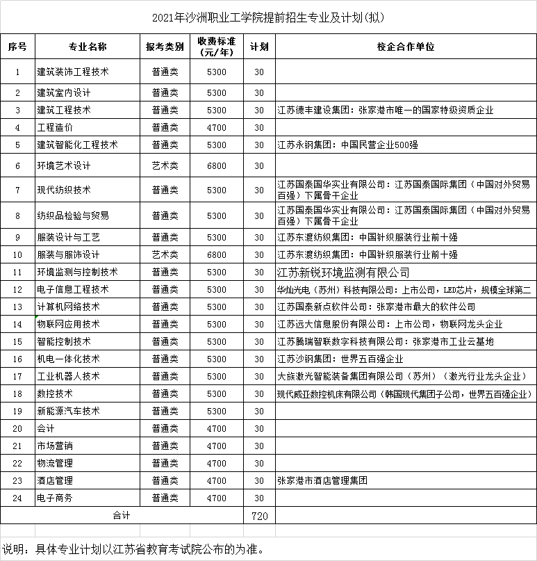 2021年沙洲職業(yè)工學(xué)院提前招生專業(yè)及計(jì)劃出爐啦!設(shè)有24個(gè)提前招生專業(yè),共招收720人,一起來(lái)看看吧!