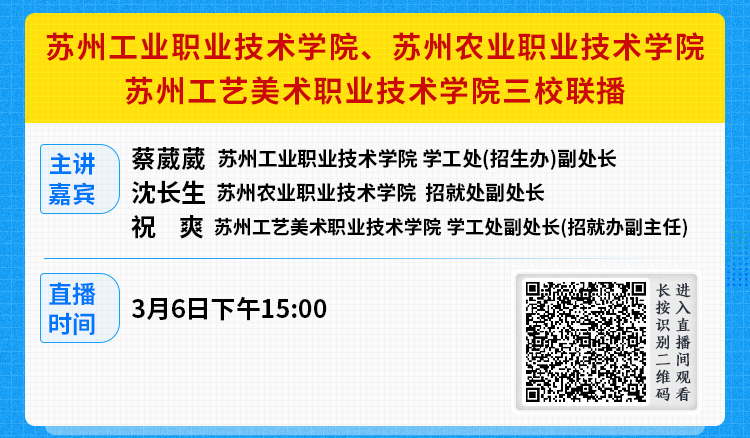 為了讓考生和家長更好地了解、報考高職提前招生,江蘇招生考試網(wǎng)將邀請高校招辦老師走進(jìn)招考網(wǎng)直播間,為大家詳細(xì)介紹提前招生相關(guān)信息!