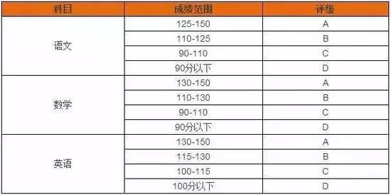 表1:語(yǔ)、數(shù)、英水平等級(jí)自測(cè)表(以150分為例)