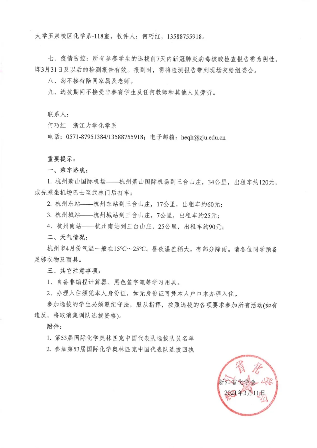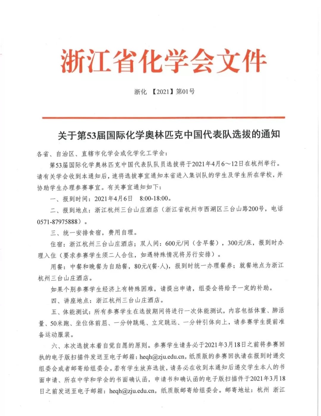最新消息,第53屆國(guó)際化學(xué)奧林匹克中國(guó)代表隊(duì)選拔賽將于2021年4月6-12日在杭州舉行!