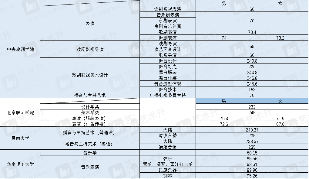 其中,北京服裝學(xué)院美術(shù)學(xué)類(lèi)合格分?jǐn)?shù)線215分