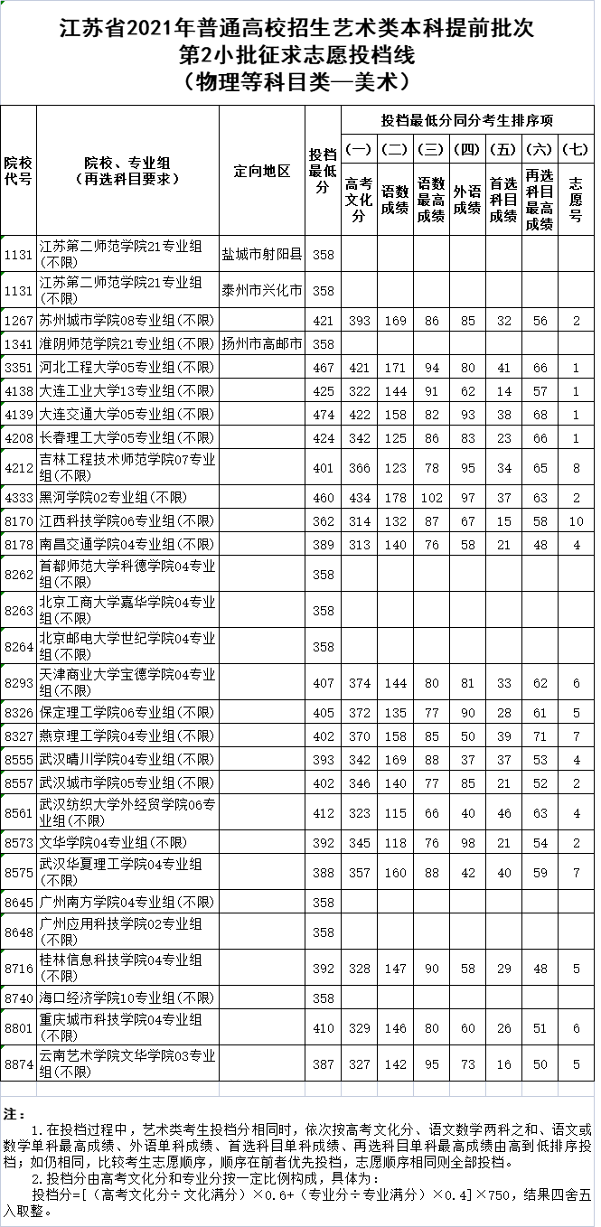 江蘇2021年普通高校招生體育類、藝術(shù)類本科提前批次征求平行志愿投檔線出爐,快和江蘇招生考試網(wǎng)小編來看看你有沒有進(jìn)檔吧!