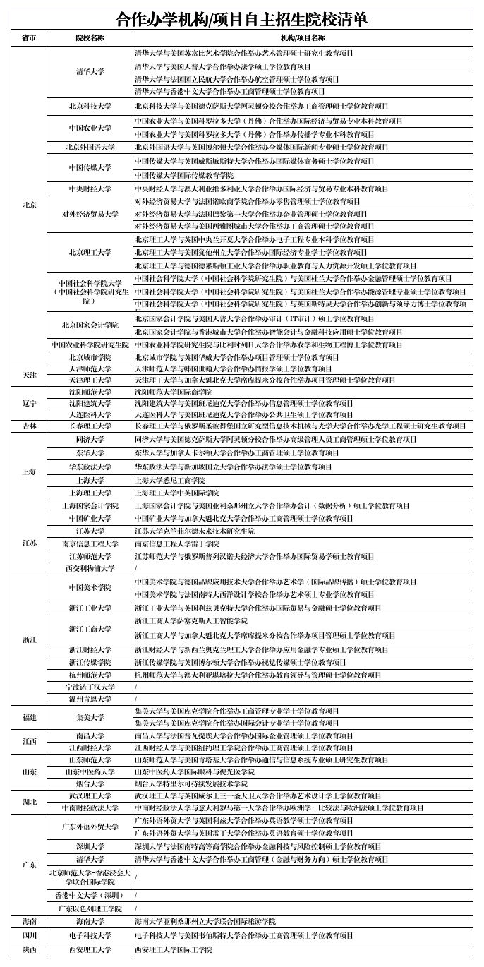據(jù)悉,教育部公布的參與此次招生的合作辦學(xué)機(jī)構(gòu)/項(xiàng)目自主招生院校包括清華、央財(cái)、同濟(jì)等50余所高校,涉及60余個(gè)本科/碩士教育項(xiàng)目。這些教育項(xiàng)目主要涉及管理、經(jīng)貿(mào)、傳媒、藝術(shù)等領(lǐng)域。