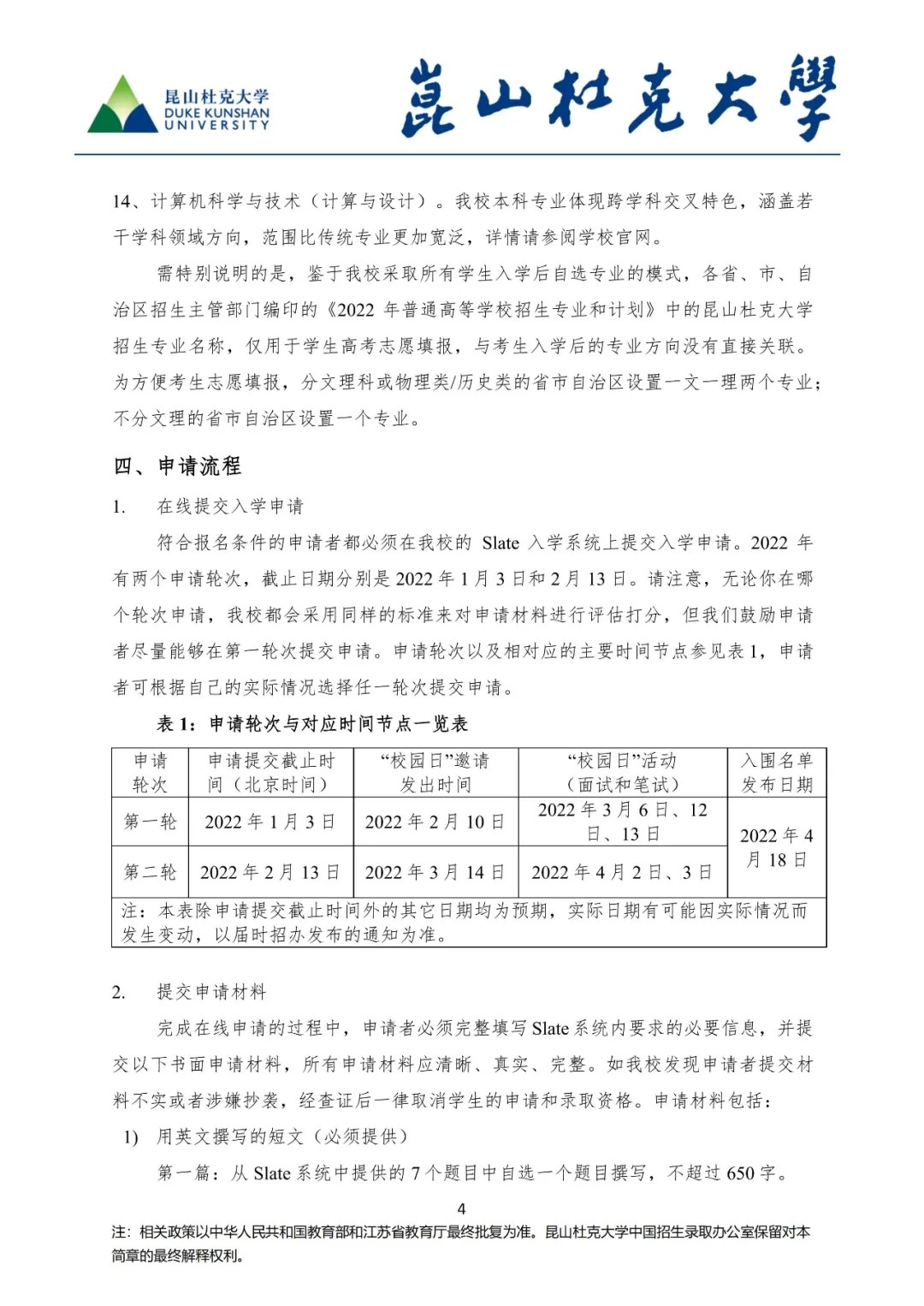 符合報(bào)名條件的申請(qǐng)者都必須在學(xué)校的 Slate 入學(xué)系統(tǒng)上提交入學(xué)申請(qǐng)。2022 年有兩個(gè)申請(qǐng)輪次,截止日期分別是 2022年1月3日和2月13日。