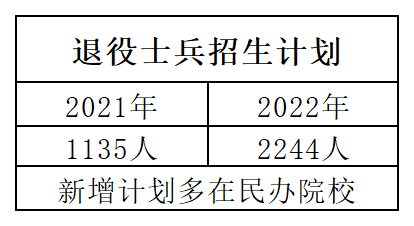盡管2022年招生計(jì)劃數(shù)比21年增加了兩千多人,但其實(shí)普通批次的招生計(jì)劃并沒(méi)有增加太多,其中將近一半增加在了退役士兵計(jì)劃上。2022年退役士兵計(jì)劃數(shù)為2244人,而2021年退役士兵計(jì)劃數(shù)有1135人,即退役士兵擴(kuò)招了1109人