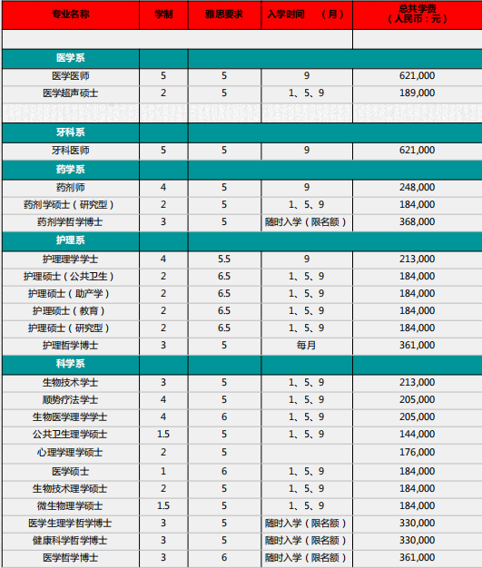 入學時間:每年1/5/9月份