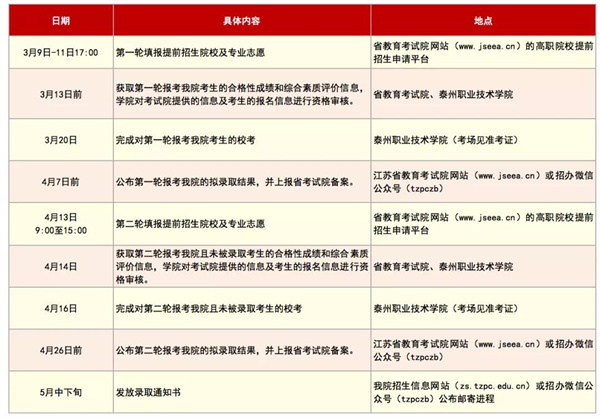 2.招生錄取工作在江蘇省教育考試院統(tǒng)一領(lǐng)導(dǎo)下進(jìn)行,由泰州職業(yè)技術(shù)學(xué)院高職院校提前招生工作領(lǐng)導(dǎo)小組具體負(fù)責(zé)組織實施。