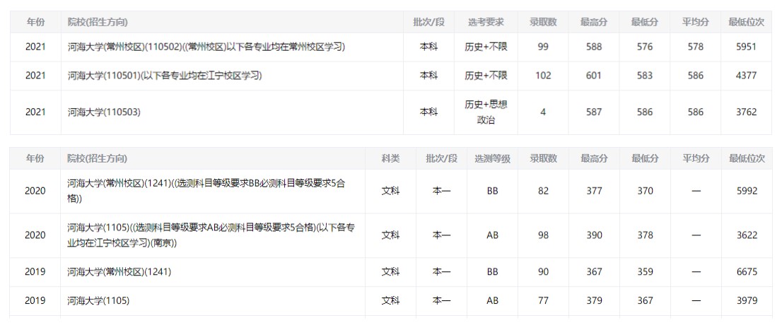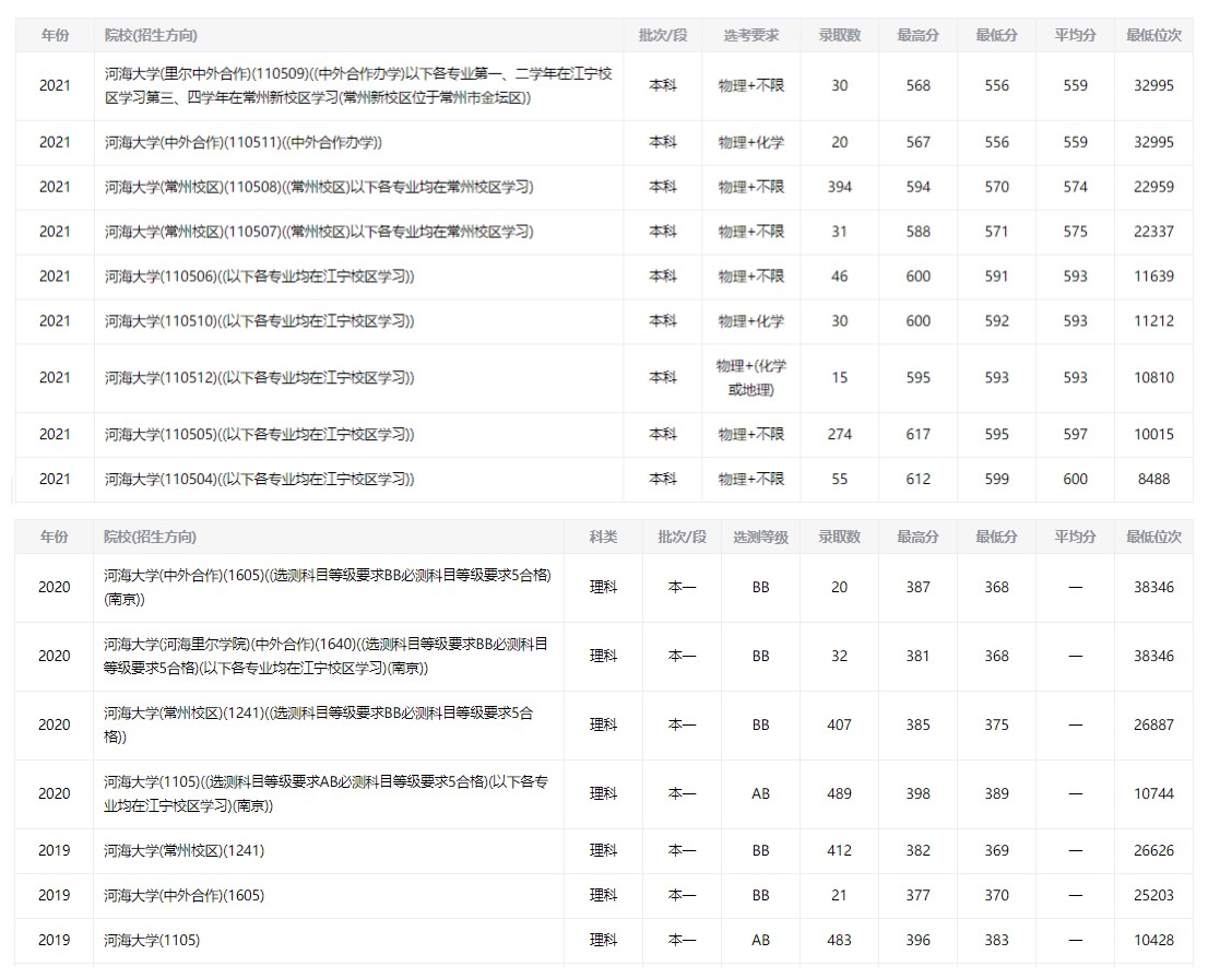 2022年河海大學(xué)各專業(yè)錄取分?jǐn)?shù)線及位次排名(江蘇?。?/h1>