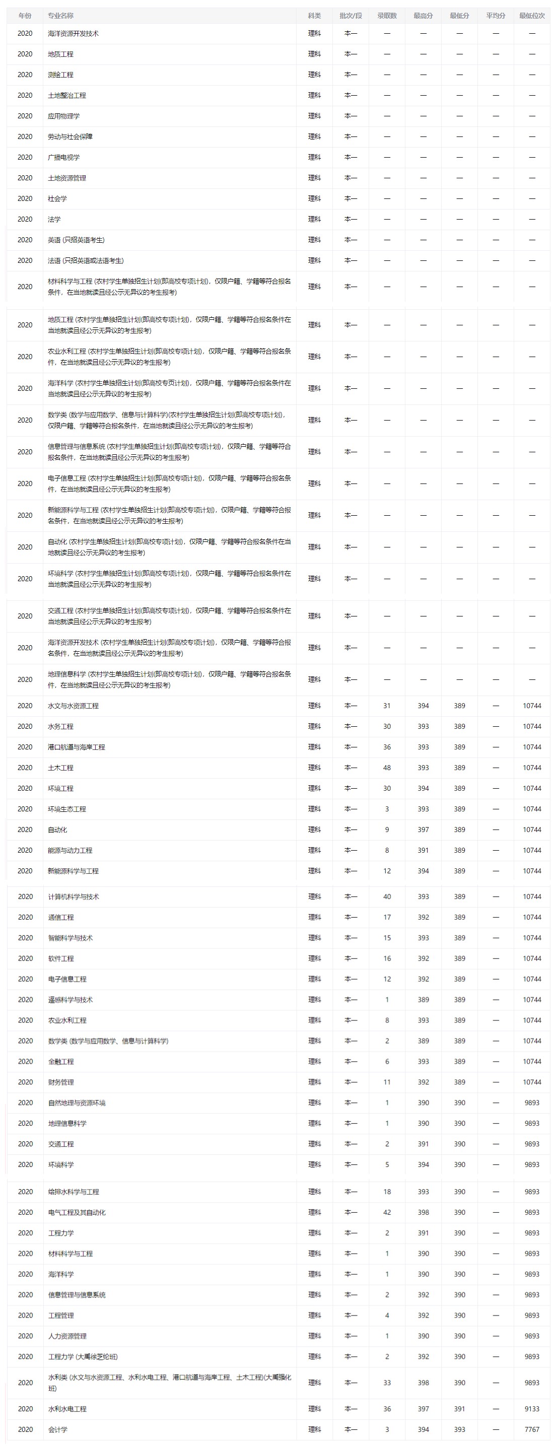 河海大學(xué)專業(yè)錄取情況