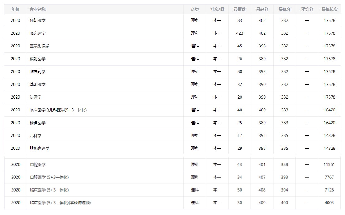1 學(xué)校簡(jiǎn)介● 南京醫(yī)科大學(xué)是首批教育部、國(guó)家衛(wèi)生健康委與省政府共建醫(yī)學(xué)院校和江蘇高水平大學(xué)建設(shè)高校。學(xué)校創(chuàng)建于1934年,時(shí)名江蘇省立醫(yī)政學(xué)院。1957年,由鎮(zhèn)江遷至南京,更名為南京醫(yī)學(xué)院。1962年,被列為全國(guó)首批六年制醫(yī)藥院校。1981年,被批準(zhǔn)為全國(guó)首批博士、碩士學(xué)位授予單位。1993年,更名為南京醫(yī)科大學(xué)。 學(xué)校設(shè)有19個(gè)學(xué)院(包含康達(dá)學(xué)院),擁有15家承擔(dān)臨床駐點(diǎn)班教學(xué)的綜合性及??菩愿綄籴t(yī)院。學(xué)校校本部現(xiàn)有在職教職工1800多人,其中學(xué)校編制專任教師986人。有教授313人、副教授268人,有博士生導(dǎo)師759人、碩士生導(dǎo)師2477人。學(xué)?,F(xiàn)有中國(guó)工程院、科學(xué)院院士5人(包括雙聘院士3人),美國(guó)國(guó)家醫(yī)學(xué)院外籍院士1名,國(guó)家百千萬(wàn)人才工程8人,國(guó)家杰出青年科學(xué)基金獲得者10人,優(yōu)秀青年基金獲得者16人,國(guó)家級(jí)教學(xué)名師1人,全國(guó)優(yōu)秀教師1人,全國(guó)模范教師1人, “國(guó)家級(jí)教學(xué)團(tuán)隊(duì)”3個(gè),教育部“創(chuàng)新團(tuán)隊(duì)”1個(gè)。 2 2022年南京醫(yī)科大學(xué)錄取分?jǐn)?shù)線及位次● 由于2022年南京醫(yī)科大學(xué)錄取分?jǐn)?shù)線還未公布,各位考生和家長(zhǎng)可以參考往年的南京醫(yī)科大學(xué)專業(yè)錄取分?jǐn)?shù)線和位次,同時(shí)也可以添加江蘇升學(xué)指導(dǎo)中心志愿填報(bào)指導(dǎo)老師咨詢。 3 南京醫(yī)科大學(xué)專業(yè)錄取情況● 1.理科(2020年) 2.文科(2021年) 4 南京醫(yī)科大學(xué)近三年分?jǐn)?shù)線及位次● 1.物理(理科) 2.歷史(文科) 相信看到這里后,2022年江蘇省的高三同學(xué)已經(jīng)知道自己要考進(jìn)江蘇省前多少名才能讀南京醫(yī)科大學(xué)。不過(guò)吳老師也要提醒大家:參考學(xué)校三年位次,只是進(jìn)入學(xué)校的門(mén)檻。如果你想被南京醫(yī)科大學(xué)里的目標(biāo)專業(yè)給錄取,那么則需要參考該校該專業(yè)近三年的錄取位次才行! 南京醫(yī)科大學(xué)錄取線及位次排名線上咨詢:https://www.sxzd.cn/bk_22482048.html 在線提交您想報(bào)考的學(xué)校和專業(yè),江蘇升學(xué)指導(dǎo)中心志愿填報(bào)指導(dǎo)老師會(huì)幫助你查詢?cè)撔v年專業(yè)錄取分?jǐn)?shù)線及位次,測(cè)出你被該校錄取的概率是多少! 哪些考生需要一對(duì)一指導(dǎo)? 1、高考分?jǐn)?shù)較高,一心想沖名校但自己又沒(méi)有把握的考生; 2、邊緣考生,即分?jǐn)?shù)剛過(guò)線,希望被較高一級(jí)院校錄取的考生; 3、分?jǐn)?shù)不上不下,全省處同等水平的考生人數(shù)眾多,面臨競(jìng)爭(zhēng)壓力難以把握勝算概率的考生; 4、既想上好學(xué)校又想進(jìn)好專業(yè),面臨院校與專業(yè)的兩難抉擇的考生; 5、對(duì)院校和專業(yè)認(rèn)識(shí)不清,了解不夠,尤其對(duì)招生錄取規(guī)則難以把握的考生; 6、家長(zhǎng)沒(méi)有時(shí)間和精力準(zhǔn)備孩子的報(bào)考事宜,對(duì)志愿填報(bào)學(xué)習(xí)不夠、準(zhǔn)備不充分,感到茫然或困難重重的考生。 如果對(duì)于孩子擇校定位有困難 可以找我們的專家進(jìn)行一對(duì)一輔導(dǎo) 掃描下方二維碼進(jìn)行預(yù)約