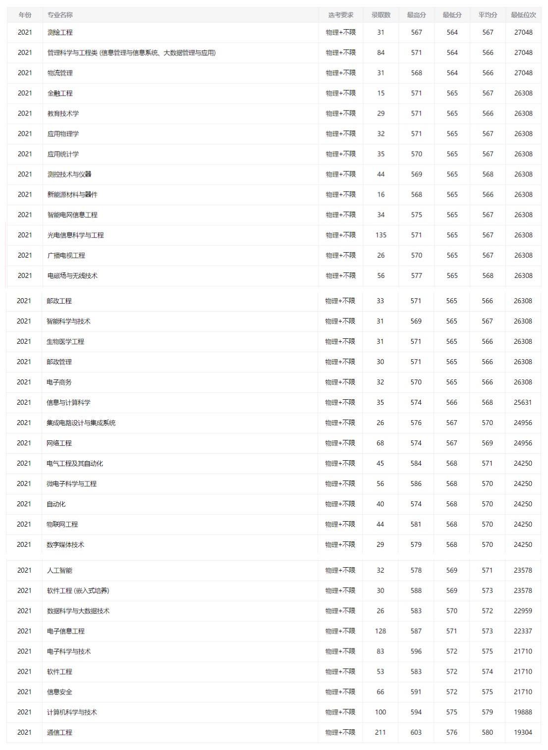 1 學(xué)校簡介● 南京郵電大學(xué)是國家“雙一流”建設(shè)高校和江蘇高水平大學(xué)高峰計(jì)劃A類建設(shè)高校,其前身是1942年誕生于山東抗日根據(jù)地的八路軍戰(zhàn)郵干訓(xùn)班,是我黨、我軍早期系統(tǒng)培養(yǎng)通信人才的學(xué)校之一。1958年經(jīng)國務(wù)院批準(zhǔn)改建為本科高校,取名南京郵電學(xué)院;2005年4月,更名為南京郵電大學(xué)。 學(xué)校秉承“信達(dá)天下 自強(qiáng)不息”的南郵精神,踐行“厚德、弘毅、求是、篤行”的校訓(xùn),發(fā)揚(yáng)“勤奮、求實(shí)、進(jìn)取、創(chuàng)新”的校風(fēng),目前學(xué)校已發(fā)展成為一所以工學(xué)為主體,以電子信息為特色,理、工、經(jīng)、管、文、教、藝、法等多學(xué)科相互交融,博士后、博士、碩士、本科等多層次教育協(xié)調(diào)發(fā)展的高校。學(xué)校坐落于歷史文化名城南京,現(xiàn)有仙林、三牌樓、鎖金村、江寧四個(gè)校區(qū),29個(gè)院(部、中心),另外還在揚(yáng)州舉辦了獨(dú)立學(xué)院—南京郵電大學(xué)通達(dá)學(xué)院。 學(xué)?,F(xiàn)有博士后流動(dòng)站3個(gè),一級學(xué)科博士學(xué)位授權(quán)點(diǎn)8個(gè),博士專業(yè)學(xué)位授權(quán)點(diǎn)(類別)1個(gè)。一級學(xué)科碩士學(xué)位授權(quán)點(diǎn)23個(gè),碩士專業(yè)學(xué)位授權(quán)點(diǎn)(類別)12個(gè),本科專業(yè)59個(gè)。目前有4個(gè)學(xué)科進(jìn)入ESI學(xué)科排名全球前4‰,國家重點(diǎn)學(xué)科(培育點(diǎn))1個(gè),國家一流專業(yè)22個(gè),國家特色專業(yè)建設(shè)點(diǎn)7個(gè),國家專業(yè)綜合改革試點(diǎn)項(xiàng)目1個(gè),9個(gè)專業(yè)通過國家工程教育專業(yè)認(rèn)證,國家級卓越計(jì)劃專業(yè)8個(gè)。作為主要協(xié)同單位入選國家“2011協(xié)同創(chuàng)新中心”2個(gè),作為牽頭單位入選省“2011計(jì)劃”協(xié)同創(chuàng)新中心2個(gè)?,F(xiàn)有各類在籍生3萬余人。 2 2022年南京郵電大學(xué)錄取分?jǐn)?shù)線及位次● 由于2022年南京郵電大學(xué)錄取分?jǐn)?shù)線還未公布,各位考生和家長可以參考往年的南京郵電大學(xué)專業(yè)錄取分?jǐn)?shù)線和位次,同時(shí)也可以添加江蘇升學(xué)指導(dǎo)中心志愿填報(bào)指導(dǎo)老師咨詢。 3 南京郵電大學(xué)專業(yè)錄取情況● 1.物理(2021年) 2.歷史(2021年) 4 南京郵電大學(xué)近三年分?jǐn)?shù)線及位次● 1.物理(理科) 2.歷史(文科) 相信看到這里后,2022年江蘇省的高三同學(xué)已經(jīng)知道自己要考進(jìn)江蘇省前多少名才能讀南京郵電大學(xué)。不過吳老師也要提醒大家:參考學(xué)校三年位次,只是進(jìn)入學(xué)校的門檻。如果你想被南京郵電大學(xué)里的目標(biāo)專業(yè)給錄取,那么則需要參考該校該專業(yè)近三年的錄取位次才行! 南京郵電大學(xué)錄取線及位次排名線上咨詢:https://www.sxzd.cn/bk_22482048.html 在線提交您想報(bào)考的學(xué)校和專業(yè),江蘇升學(xué)指導(dǎo)中心志愿填報(bào)指導(dǎo)老師會(huì)幫助你查詢該校歷年專業(yè)錄取分?jǐn)?shù)線及位次,測出你被該校錄取的概率是多少! 哪些考生需要一對一指導(dǎo)? 1、高考分?jǐn)?shù)較高,一心想沖名校但自己又沒有把握的考生; 2、邊緣考生,即分?jǐn)?shù)剛過線,希望被較高一級院校錄取的考生; 3、分?jǐn)?shù)不上不下,全省處同等水平的考生人數(shù)眾多,面臨競爭壓力難以把握勝算概率的考生; 4、既想上好學(xué)校又想進(jìn)好專業(yè),面臨院校與專業(yè)的兩難抉擇的考生; 5、對院校和專業(yè)認(rèn)識(shí)不清,了解不夠,尤其對招生錄取規(guī)則難以把握的考生; 6、家長沒有時(shí)間和精力準(zhǔn)備孩子的報(bào)考事宜,對志愿填報(bào)學(xué)習(xí)不夠、準(zhǔn)備不充分,感到茫然或困難重重的考生。 如果對于孩子擇校定位有困難 可以找我們的專家進(jìn)行一對一輔導(dǎo) 掃描下方二維碼進(jìn)行預(yù)約