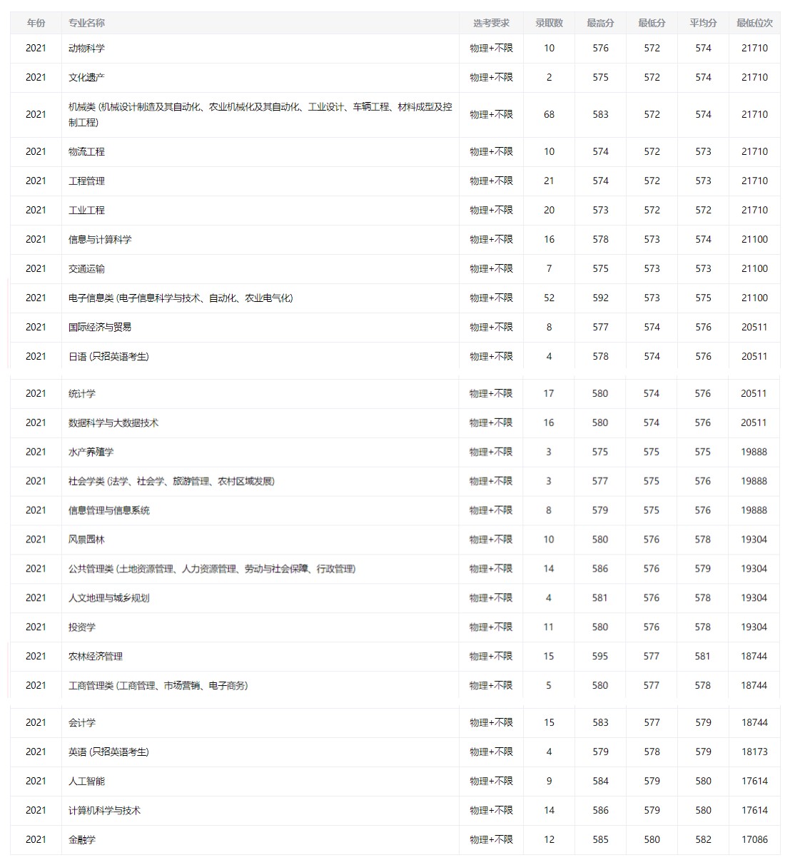 1 學(xué)校簡介● 南京農(nóng)業(yè)大學(xué)坐落于鐘靈毓秀、虎踞龍蟠的古都南京,是一所以農(nóng)業(yè)和生命科學(xué)為優(yōu)勢和特色,農(nóng)、理、經(jīng)、管、工、文、法學(xué)多學(xué)科協(xié)調(diào)發(fā)展的教育部直屬全國重點大學(xué),是國家“211工程”重點建設(shè)大學(xué)、“985優(yōu)勢學(xué)科創(chuàng)新平臺”和“雙一流”建設(shè)高校。 南京農(nóng)業(yè)大學(xué)前身可溯源至1902年三江師范學(xué)堂農(nóng)學(xué)博物科和1914年私立金陵大學(xué)農(nóng)科。1952年,全國高校院系調(diào)整,以金陵大學(xué)農(nóng)學(xué)院、南京大學(xué)農(nóng)學(xué)院(原國立中央大學(xué)農(nóng)學(xué)院)為主體,以及浙江大學(xué)農(nóng)學(xué)院部分系科,合并成立南京農(nóng)學(xué)院;1963年,被確定為全國兩所重點農(nóng)業(yè)高校之一;1972年,搬遷至揚州與蘇北農(nóng)學(xué)院合并,成立江蘇農(nóng)學(xué)院;1979年,回遷南京,恢復(fù)南京農(nóng)學(xué)院;1984年,更名為南京農(nóng)業(yè)大學(xué)。 南京農(nóng)業(yè)大學(xué)人才培養(yǎng)涵蓋本科生教育、研究生教育、留學(xué)生教育、繼續(xù)教育及干部培訓(xùn)等各層次,建有“國家大學(xué)生文化素質(zhì)教育基地”“國家理科基礎(chǔ)科學(xué)研究與教學(xué)人才培養(yǎng)基地”“國家生命科學(xué)與技術(shù)人才培養(yǎng)基地”和植物生產(chǎn)、動物科學(xué)類、農(nóng)業(yè)生物學(xué)虛擬仿真國家級實驗教學(xué)中心,是首批通過全國高校本科教學(xué)工作優(yōu)秀評價的大學(xué)之一。2000年,獲教育部批準建立研究生院。2014年,首批入選國家卓越農(nóng)林人才培養(yǎng)計劃。在百余年的辦學(xué)歷程中,學(xué)校秉承以“誠樸勤仁”為核心的南農(nóng)精神,培養(yǎng)具有“世界眼光、中國情懷、南農(nóng)品格”的拔尖創(chuàng)新型和復(fù)合應(yīng)用型人才,先后造就包括60位院士在內(nèi)的30余萬名優(yōu)秀人才。 2 2022年南京農(nóng)業(yè)大學(xué)錄取分數(shù)線及位次● 由于2022年南京農(nóng)業(yè)大學(xué)錄取分數(shù)線還未公布,各位考生和家長可以參考往年的南京農(nóng)業(yè)大學(xué)專業(yè)錄取分數(shù)線和位次,同時也可以添加江蘇升學(xué)指導(dǎo)中心志愿填報指導(dǎo)老師咨詢。 3 南京農(nóng)業(yè)大學(xué)專業(yè)錄取情況● 1.物理(2021年) 2.歷史(2021年) 4 南京農(nóng)業(yè)大學(xué)近三年分數(shù)線及位次● 1.物理(理科) 2.歷史(文科) 相信看到這里后,2022年江蘇省的高三同學(xué)已經(jīng)知道自己要考進江蘇省前多少名才能讀南京農(nóng)業(yè)大學(xué)。不過吳老師也要提醒大家:參考學(xué)校三年位次,只是進入學(xué)校的門檻。如果你想被南京農(nóng)業(yè)大學(xué)里的目標專業(yè)給錄取,那么則需要參考該校該專業(yè)近三年的錄取位次才行! 南京農(nóng)業(yè)大學(xué)錄取線及位次排名線上咨詢:https://www.sxzd.cn/bk_22482048.html 在線提交您想報考的學(xué)校和專業(yè),江蘇升學(xué)指導(dǎo)中心志愿填報指導(dǎo)老師會幫助你查詢該校歷年專業(yè)錄取分數(shù)線及位次,測出你被該校錄取的概率是多少! 哪些考生需要一對一指導(dǎo)? 1、高考分數(shù)較高,一心想沖名校但自己又沒有把握的考生; 2、邊緣考生,即分數(shù)剛過線,希望被較高一級院校錄取的考生; 3、分數(shù)不上不下,全省處同等水平的考生人數(shù)眾多,面臨競爭壓力難以把握勝算概率的考生; 4、既想上好學(xué)校又想進好專業(yè),面臨院校與專業(yè)的兩難抉擇的考生; 5、對院校和專業(yè)認識不清,了解不夠,尤其對招生錄取規(guī)則難以把握的考生; 6、家長沒有時間和精力準備孩子的報考事宜,對志愿填報學(xué)習(xí)不夠、準備不充分,感到茫然或困難重重的考生。 如果對于孩子擇校定位有困難 可以找我們的專家進行一對一輔導(dǎo) 掃描下方二維碼進行預(yù)約