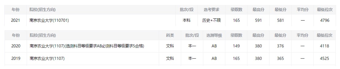 南京農(nóng)業(yè)大學(xué)2022錄取分數(shù)線是多少,各專業(yè)錄取分數(shù)線及對應(yīng)的位次是多少,是每個填報南京農(nóng)業(yè)大學(xué)的考生最關(guān)注的問題,隨著江蘇省高考錄取批次的公布,考生也開始關(guān)心是否被南京農(nóng)業(yè)大學(xué)的錄取,江蘇升學(xué)指導(dǎo)中心志愿填報指導(dǎo)吳老師,整理出了南京農(nóng)業(yè)大學(xué)歷年相關(guān)錄取信息,供考生參考,希望對大家有所幫助!