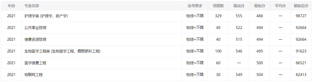 1 學校簡介● 徐州醫(yī)科大學的歷史最早可追溯至創(chuàng)辦于1934年的江蘇省立醫(yī)政學院,1958年由南京醫(yī)學院分遷至徐州成立南京醫(yī)學院徐州分院,1960年定名為徐州醫(yī)學院,2016年更名為徐州醫(yī)科大學。六十余年來,學校不斷發(fā)揚“艱苦創(chuàng)業(yè)、不斷創(chuàng)新、勇于創(chuàng)優(yōu)”的優(yōu)良傳統(tǒng),大力實施“人才強校、質(zhì)量立校、科技興校、特色名校、文化鑄?!钡陌l(fā)展戰(zhàn)略,堅持“創(chuàng)新型發(fā)展”“選擇性優(yōu)秀”“關聯(lián)性拉動”的發(fā)展思路,走出了一條極具特色的發(fā)展之路,是整個淮海經(jīng)濟區(qū)辦學歷史悠久、辦學特色鮮明的一所高等醫(yī)學院校,也是該地區(qū)醫(yī)學教育、醫(yī)學科研和醫(yī)療服務的中心。 學校設18個學院(部)、21所附屬醫(yī)院、15所臨床學院,有全日制在校生16000余人,教職工1300余人。設置28個本科專業(yè),涵蓋醫(yī)、理、工、管4個學科門類。有臨床醫(yī)學、生物學2個博士學位授權一級學科,臨床醫(yī)學、基礎醫(yī)學、生物學、生物醫(yī)學工程、藥學、公共衛(wèi)生與預防醫(yī)學、醫(yī)學技術7個碩士學位授權一級學科和臨床醫(yī)學、口腔醫(yī)學、藥學、公共衛(wèi)生、護理5個專業(yè)學位授權點,具備碩士研究生推免權,并設有生物學、臨床醫(yī)學2個博士后科研流動站和臨床醫(yī)學博士后科研工作站。形成了從本科生、研究生到博士后,從全日制到成人教育、留學生教育全方位、多層次的教育體系。 學校堅持以教學工作為中心,深化教學改革,規(guī)范教學管理,教學質(zhì)量不斷提高,通過教育部本科教學工作審核評估。擁有國家級一流專業(yè)建設點、國家級特色專業(yè)建設點、國家級規(guī)劃教材、國家級人才培養(yǎng)模式創(chuàng)新實驗區(qū)、國家級實驗教學示范中心和國家級教學團隊,是國家第一批臨床醫(yī)學碩士專業(yè)學位研究生培養(yǎng)模式改革試點高校;通過教育部臨床醫(yī)學專業(yè)認證,認證有效期7年;獲國家級教學成果一等獎、二等獎各1項,以及省級教學成果特等獎等一批省部級獎項;獲國家級“卓越醫(yī)生教育培養(yǎng)計劃”項目和中央財政支持地方高校發(fā)展專項資金建設項目多項,以及一批省級品牌專業(yè)、重點專業(yè)(類)、精品課程和教材、實驗教學示范中心和實踐教育中心。 2 2022年徐州醫(yī)科大學錄取分數(shù)線及位次● 由于2022年徐州醫(yī)科大學錄取分數(shù)線還未公布,各位考生和家長可以參考往年的徐州醫(yī)科大學專業(yè)錄取分數(shù)線和位次,同時也可以添加江蘇升學指導中心志愿填報指導老師咨詢。 3 徐州醫(yī)科大學專業(yè)錄取情況● 1.物理(2021年) 2.歷史(2021年) 4 徐州醫(yī)科大學近三年分數(shù)線及位次● 1.物理(理科) 2.歷史(文科) 相信看到這里后,2022年江蘇省的高三同學已經(jīng)知道自己要考進江蘇省前多少名才能讀徐州醫(yī)科大學。不過吳老師也要提醒大家:參考學校三年位次,只是進入學校的門檻。如果你想被徐州醫(yī)科大學里的目標專業(yè)給錄取,那么則需要參考該校該專業(yè)近三年的錄取位次才行! 徐州醫(yī)科大學錄取線及位次排名線上咨詢:https://www.sxzd.cn/bk_22482048.html 在線提交您想報考的學校和專業(yè),江蘇升學指導中心志愿填報指導老師會幫助你查詢該校歷年專業(yè)錄取分數(shù)線及位次,測出你被該校錄取的概率是多少! 哪些考生需要一對一指導? 1、高考分數(shù)較高,一心想沖名校但自己又沒有把握的考生; 2、邊緣考生,即分數(shù)剛過線,希望被較高一級院校錄取的考生; 3、分數(shù)不上不下,全省處同等水平的考生人數(shù)眾多,面臨競爭壓力難以把握勝算概率的考生; 4、既想上好學校又想進好專業(yè),面臨院校與專業(yè)的兩難抉擇的考生; 5、對院校和專業(yè)認識不清,了解不夠,尤其對招生錄取規(guī)則難以把握的考生; 6、家長沒有時間和精力準備孩子的報考事宜,對志愿填報學習不夠、準備不充分,感到茫然或困難重重的考生。 如果對于孩子擇校定位有困難 可以找我們的專家進行一對一輔導 掃描下方二維碼進行預約