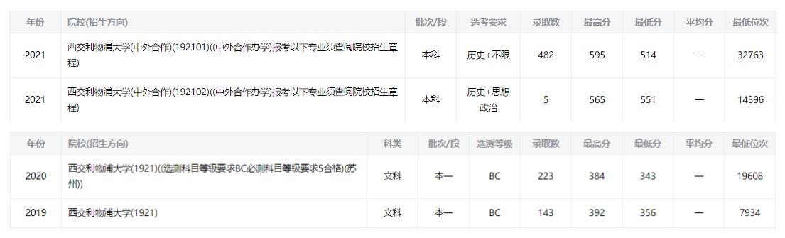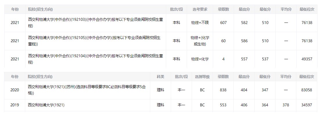 西交利物浦大學(xué)近三年分數(shù)線及位次
