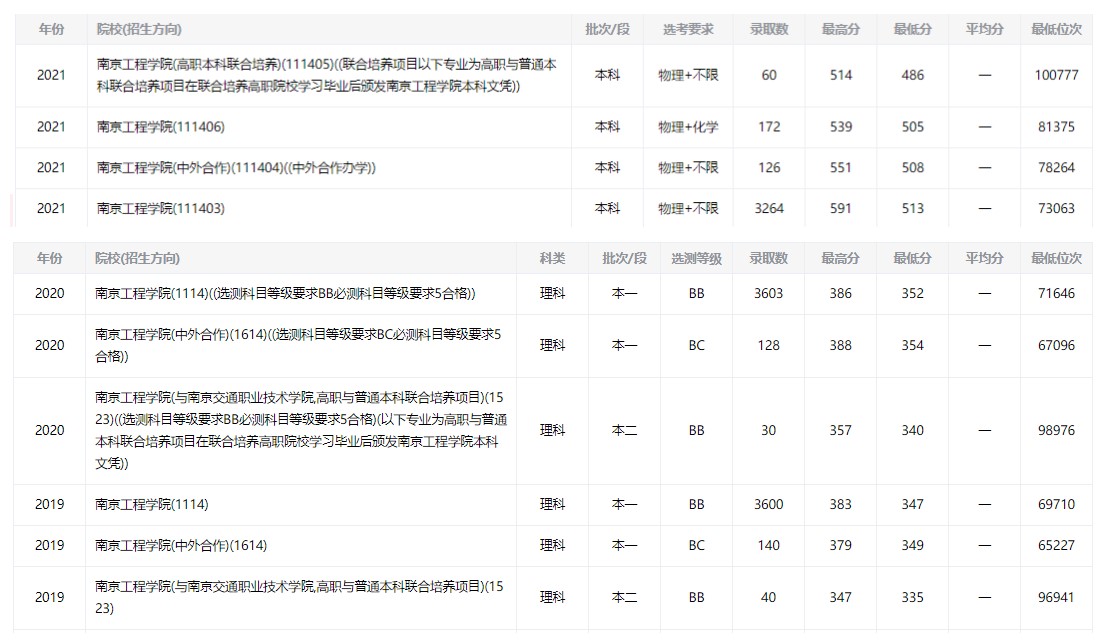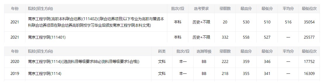 南京工程學(xué)院近三年分?jǐn)?shù)線及位次