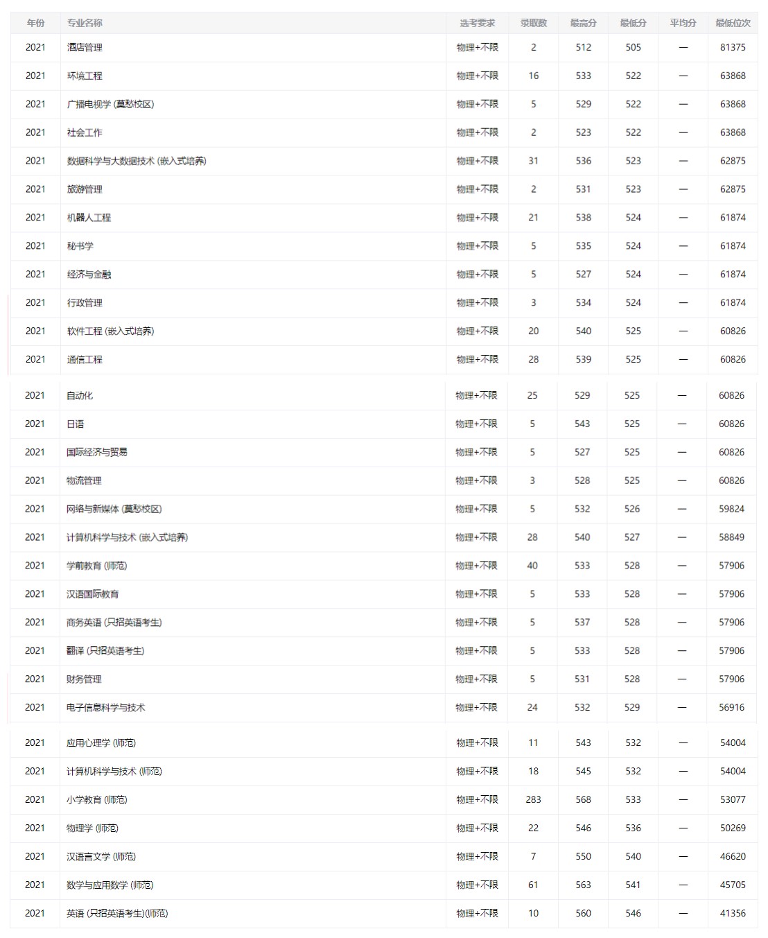 2 2022年南京曉莊學(xué)院錄取分?jǐn)?shù)線(xiàn)及位次● 由于2022年南京曉莊學(xué)院錄取分?jǐn)?shù)線(xiàn)還未公布,各位考生和家長(zhǎng)可以參考往年的南京曉莊學(xué)院專(zhuān)業(yè)錄取分?jǐn)?shù)線(xiàn)和位次,同時(shí)也可以添加江蘇升學(xué)指導(dǎo)中心志愿填報(bào)指導(dǎo)老師咨詢(xún)。 3 南京曉莊學(xué)院專(zhuān)業(yè)錄取情況● 1.物理(2021年) 2.歷史(2021年)