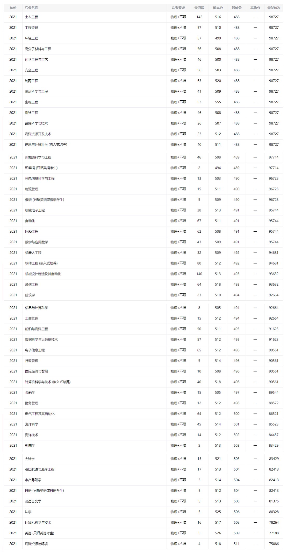 2022年江蘇海洋大學(xué)各專業(yè)錄取分?jǐn)?shù)線及位次排名(江蘇?。?/h1>