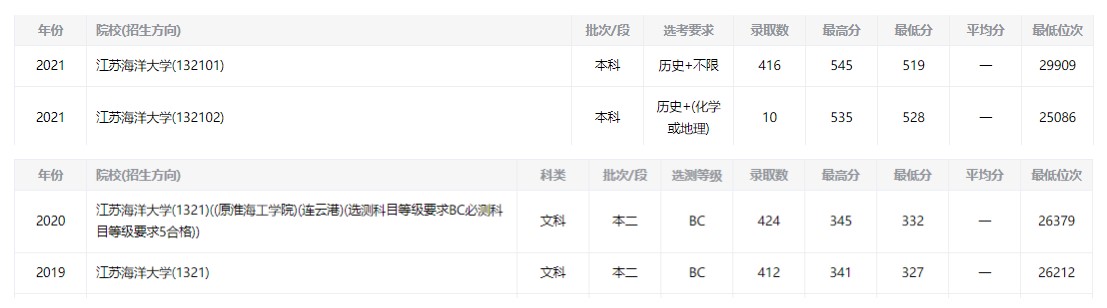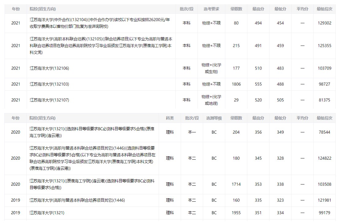 江蘇海洋大學(xué)近三年分?jǐn)?shù)線及位次